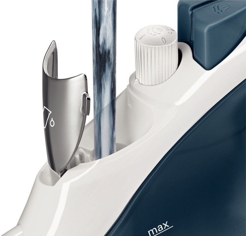 Керамическая подошва Palladium-glissée. Регулировка уровня подачи пара (0/1/2). Прозрачная емкость для воды (0.22 л). Длинный шнур (1.9 м ) с гибким круговым шарниром 360 Flexogelenk.3AntiCalc: тройная система защиты от накипи.